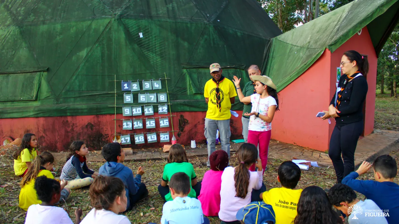 The camp took place in Terras da Irmandade, one of the areas of the Light-Community. The entire program was organized in partnership. The scouts and teachers developed fun activities for children to work as a team and also brought reflections on human relationships with other kingdoms of nature and the importance of understanding this integration.